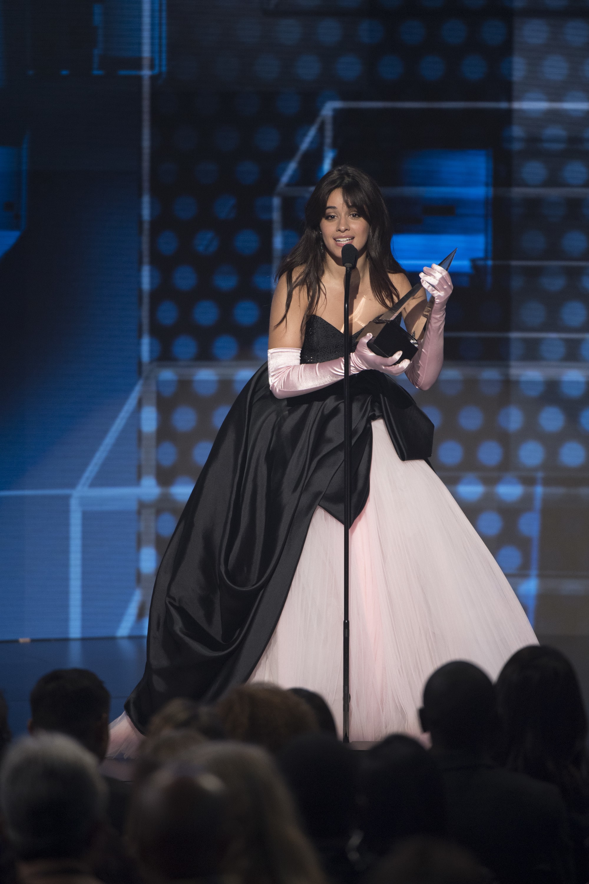Next, it’s Ashley and Evan. Evan is Tracee’s brother. Favorite Pop/Rock Song is presented to Camila Cabello and Young Thug for “Havana.” It’s her first AMA as a solo artist.