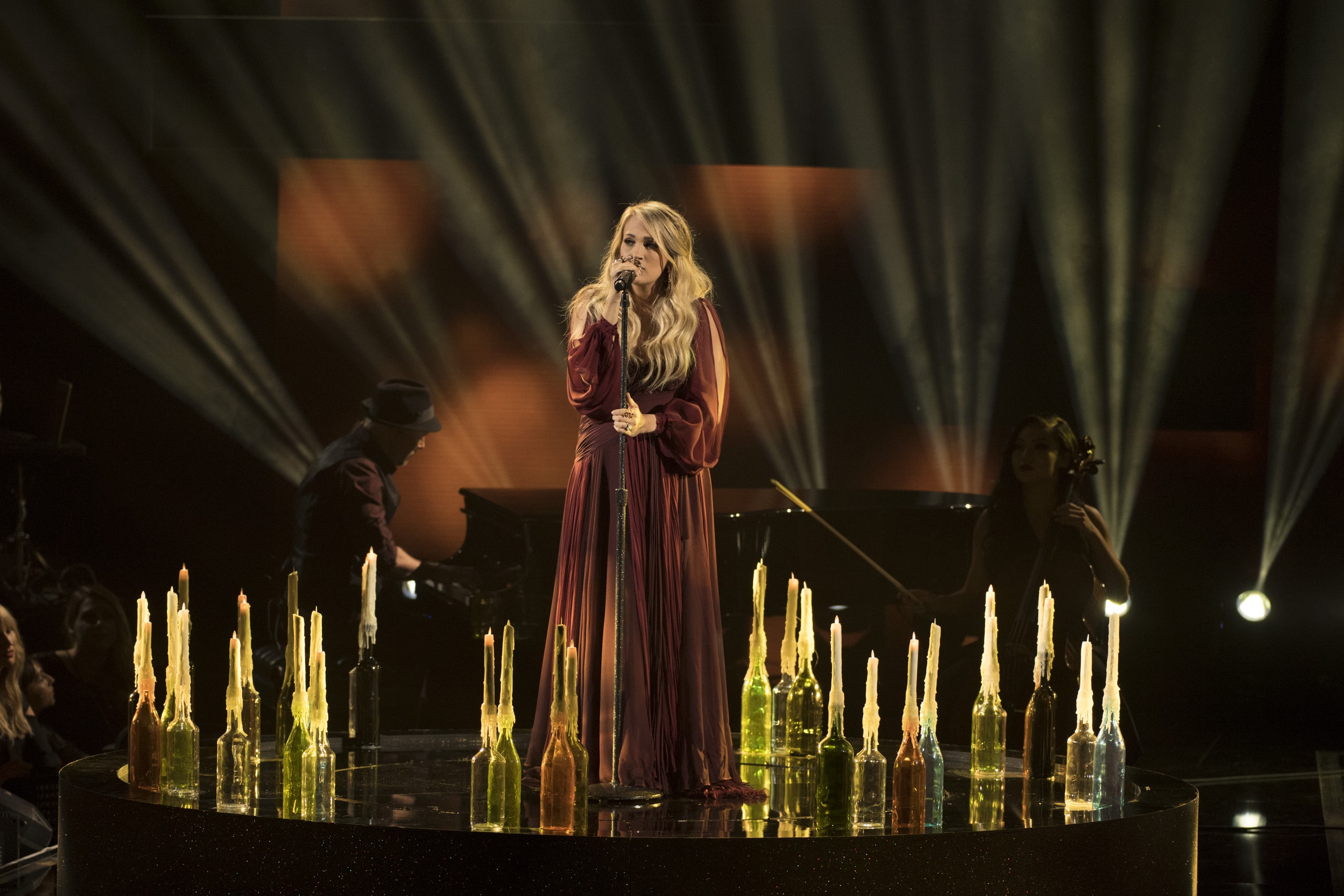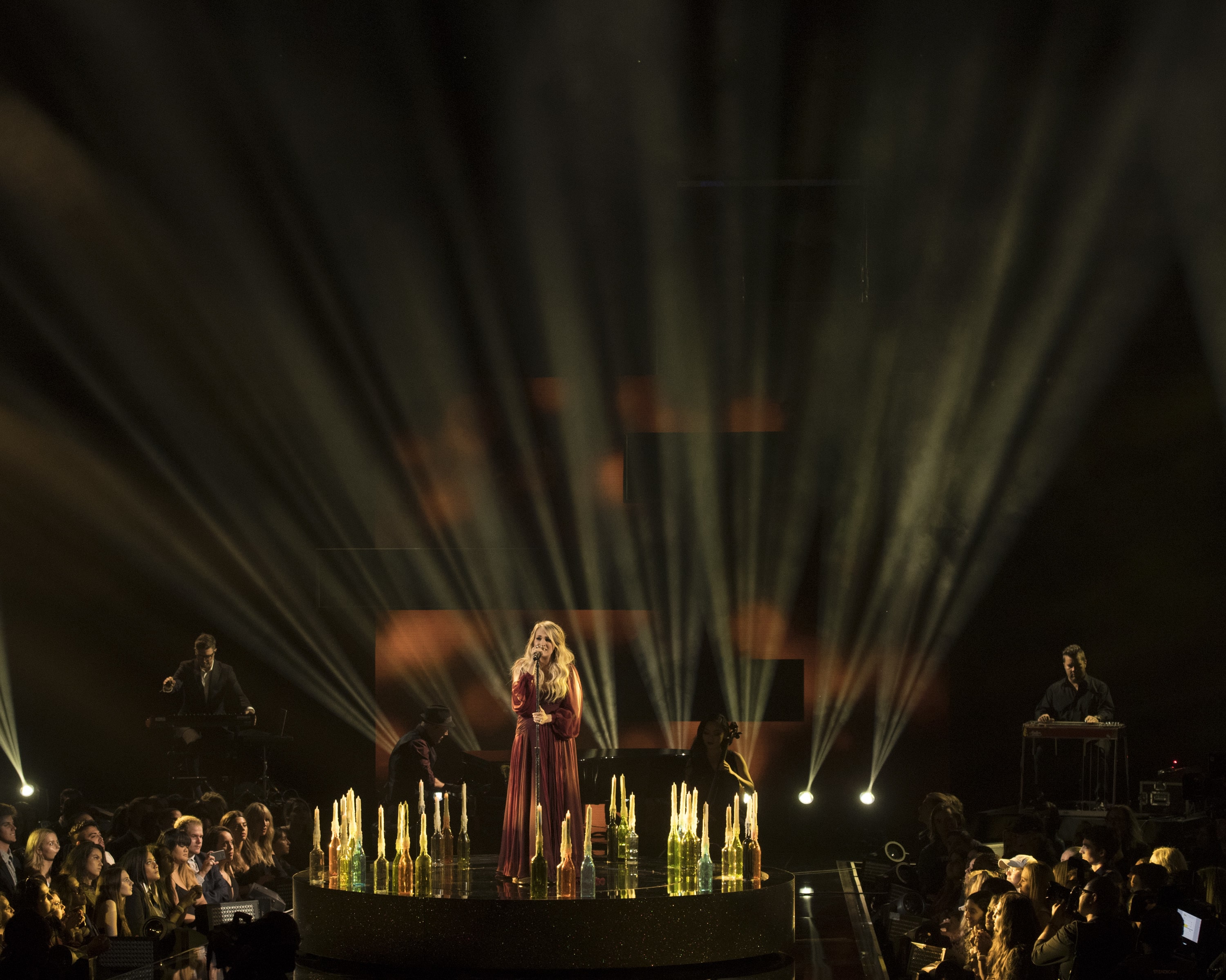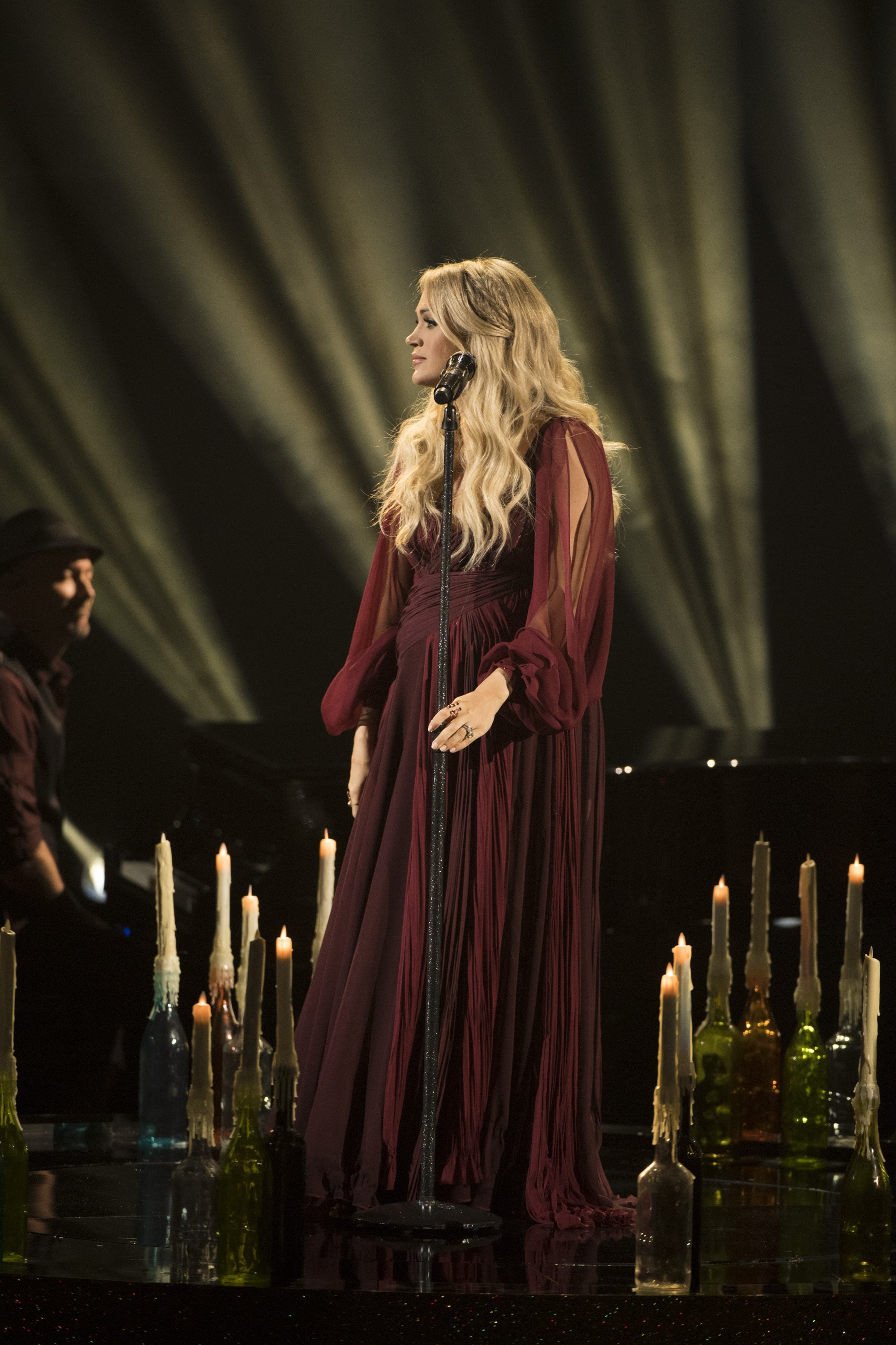 Next, it’s Carrie Underwood performing the poignant “Spinning Bottles” from her new album Cry Pretty. This is so emotional. Wow. One of the best performances of the night. Blame the hormones.