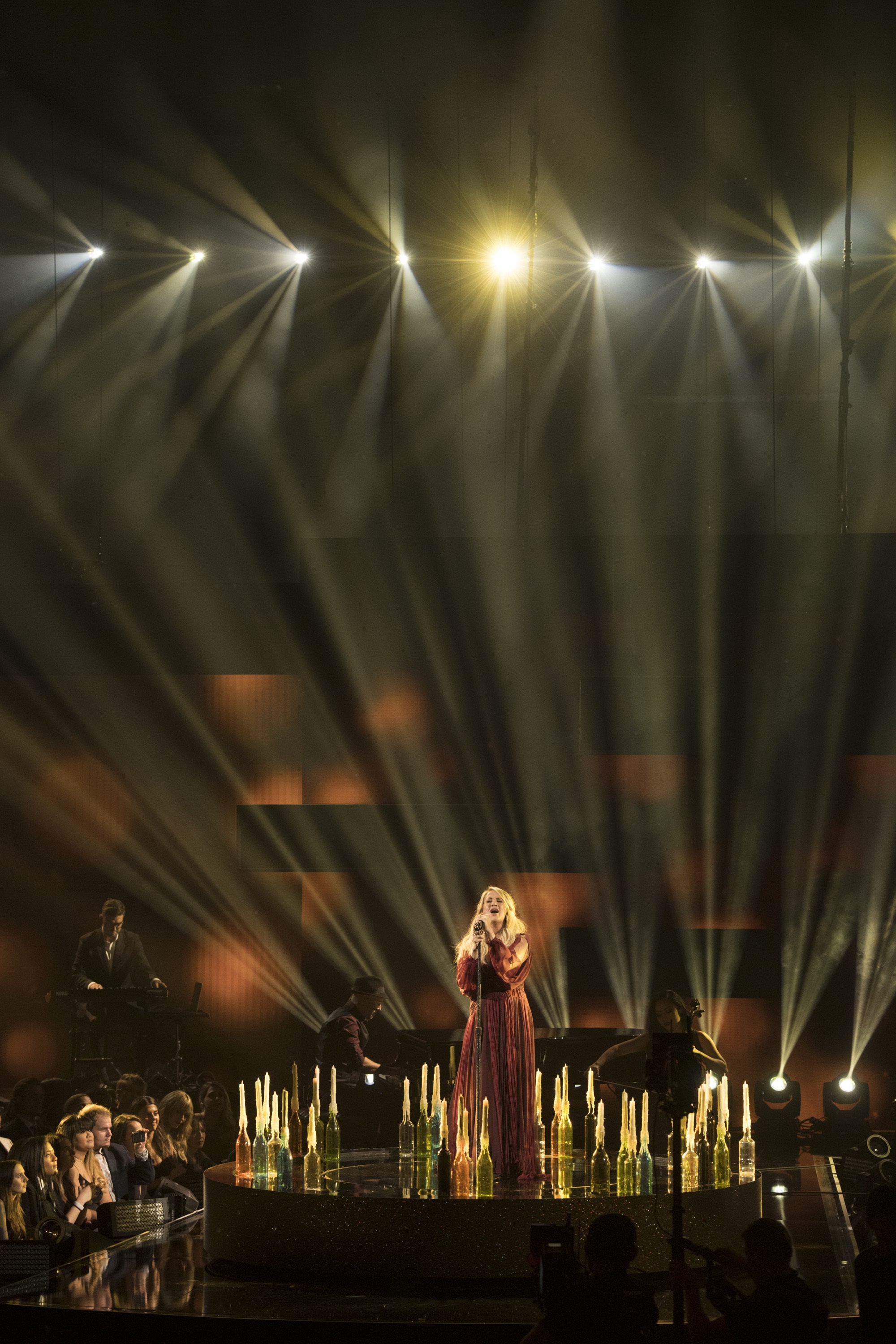 Next Ella Mai performs her song “Boo’d Up.” She’s singing just under pitch, at first.