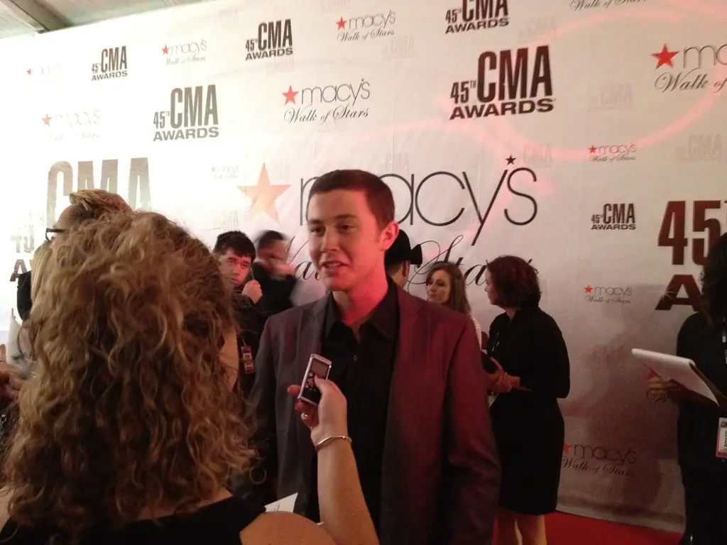 Scotty McCreery on the #CMAawards #RedCarpet says he’s looking forward to seeing Brad & Carrie, Jason Aldean.