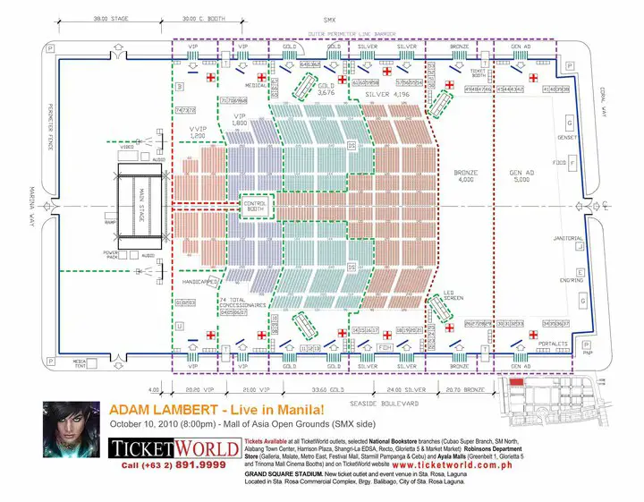 Adam Lambert brings his Glam Nation Tour to the Mall of Asia in Manilla, Philippines. Let’s hope for a great show on 101010. The show starts at 8 am EST. The setup for Adam’s show holds about 20, 000. The show is not sold out.