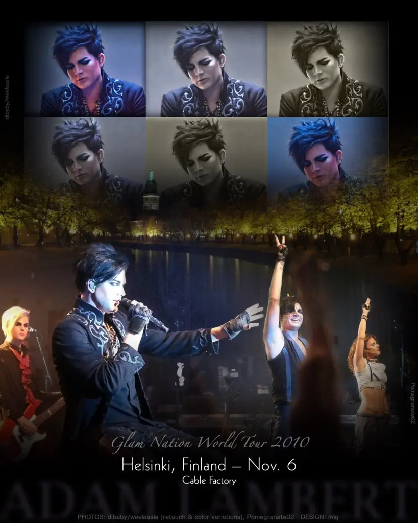 After a mini glamcation, Adam Lambert begins his European leg of his Glam Nation tour today in Helsinki, Finland, at the Cable Factory. This is the largest cultural facility in Finland. The venue can hold between 1500 and 2870 people, depending on the set up. The show starts at 6pm local time / noon EST and is another Glam Nation sell-out concert.