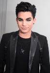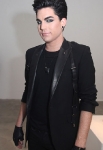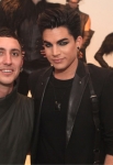 Adam Lambert and designer Jonny Cota pose for a photo at the Skingraft installation at LA Fashion Week on Sunday.