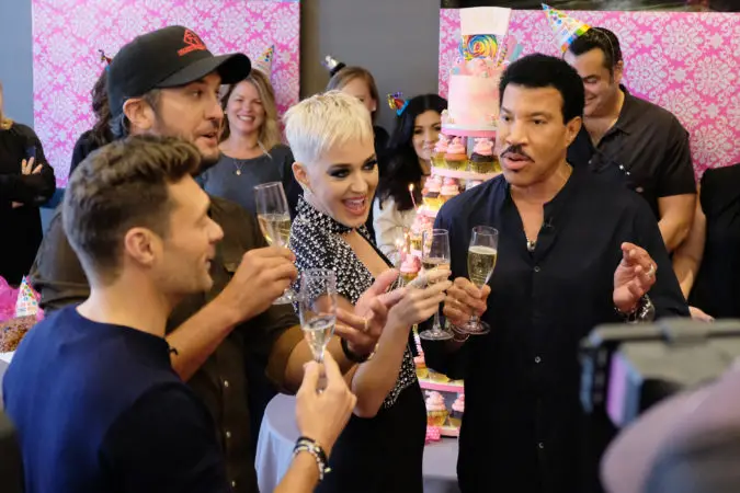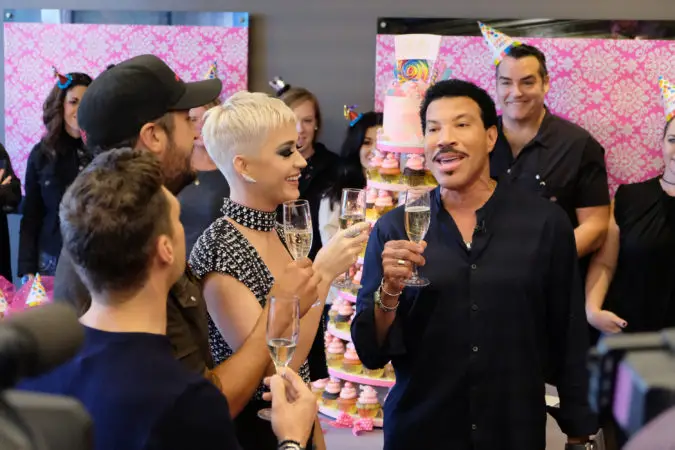 The staff celebrated Katy’s (almost) birthday. Fellow judges Lionel Richie and Luke Bryan, along with host Ryan Seacrest surprised the singer with a puppy party. Cuteness.