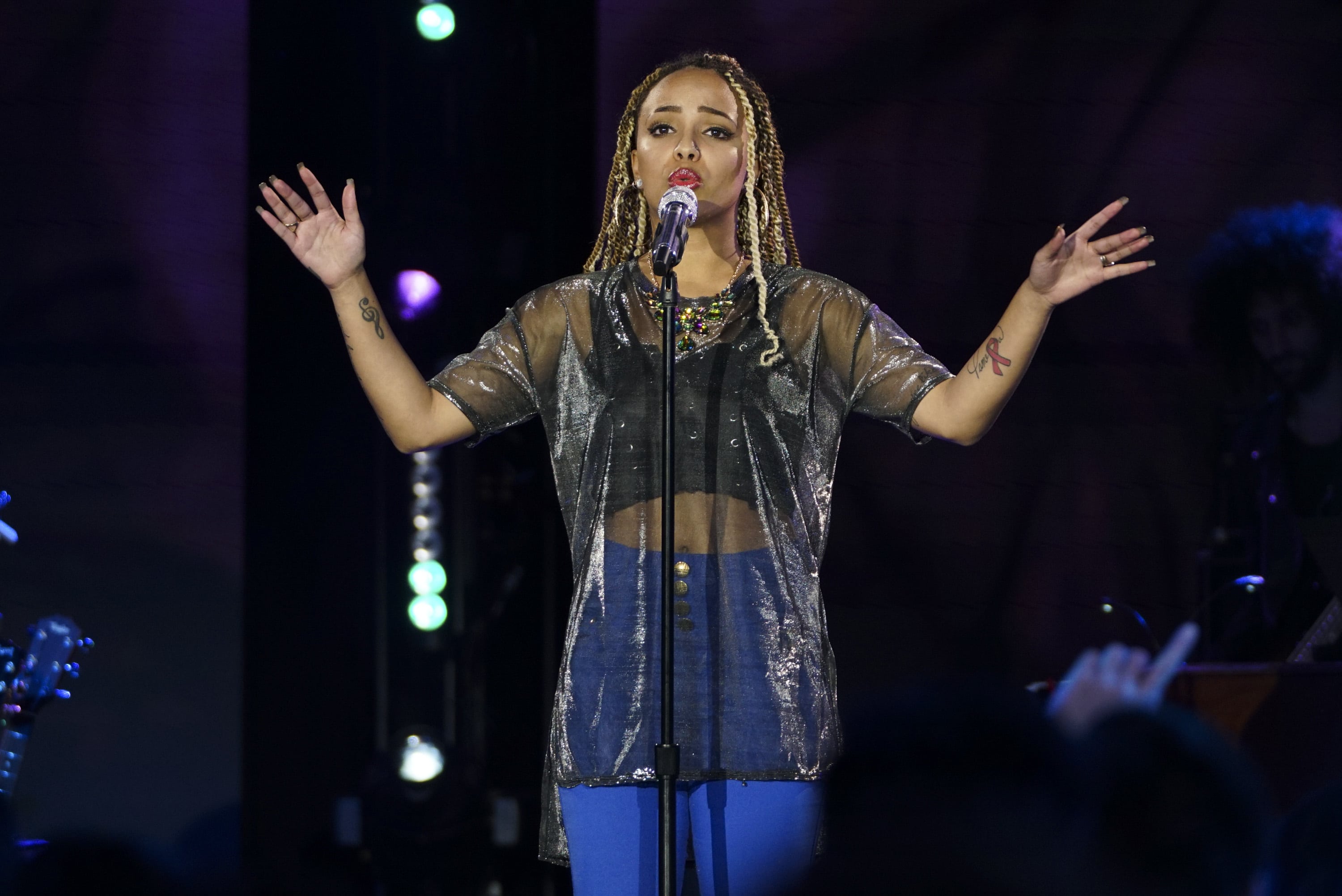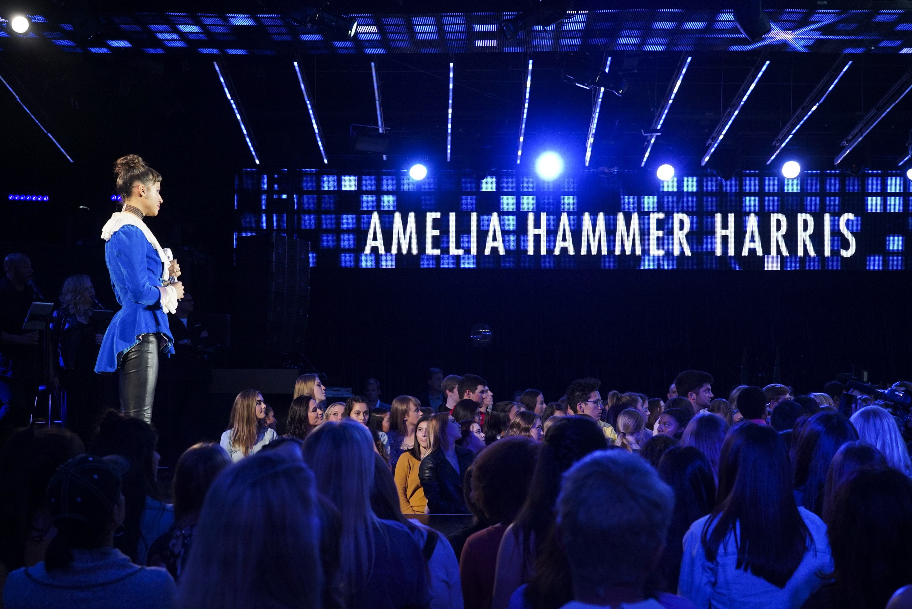 - Amelia Hammer Harris with celebrity duet partner Bebe Rexha