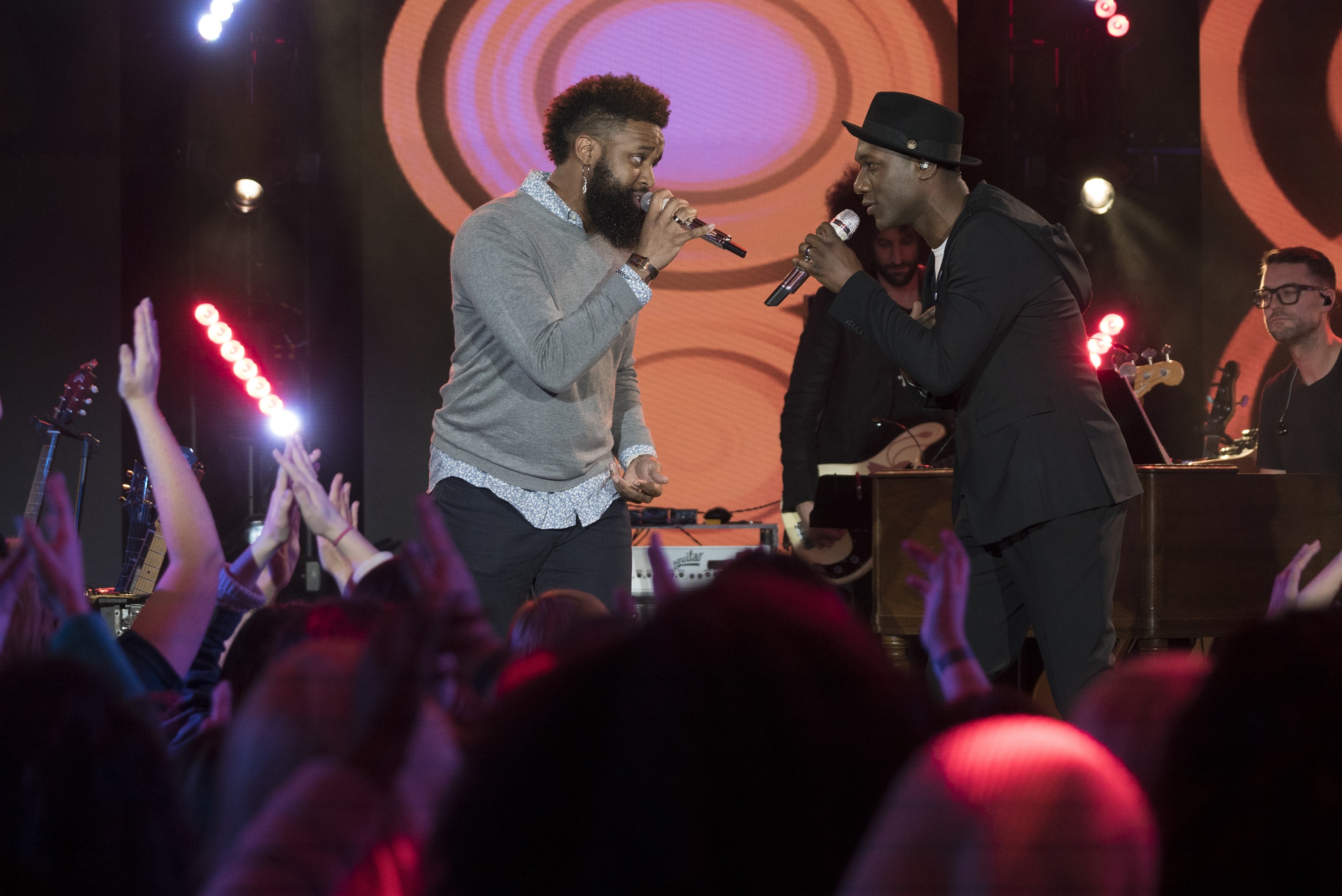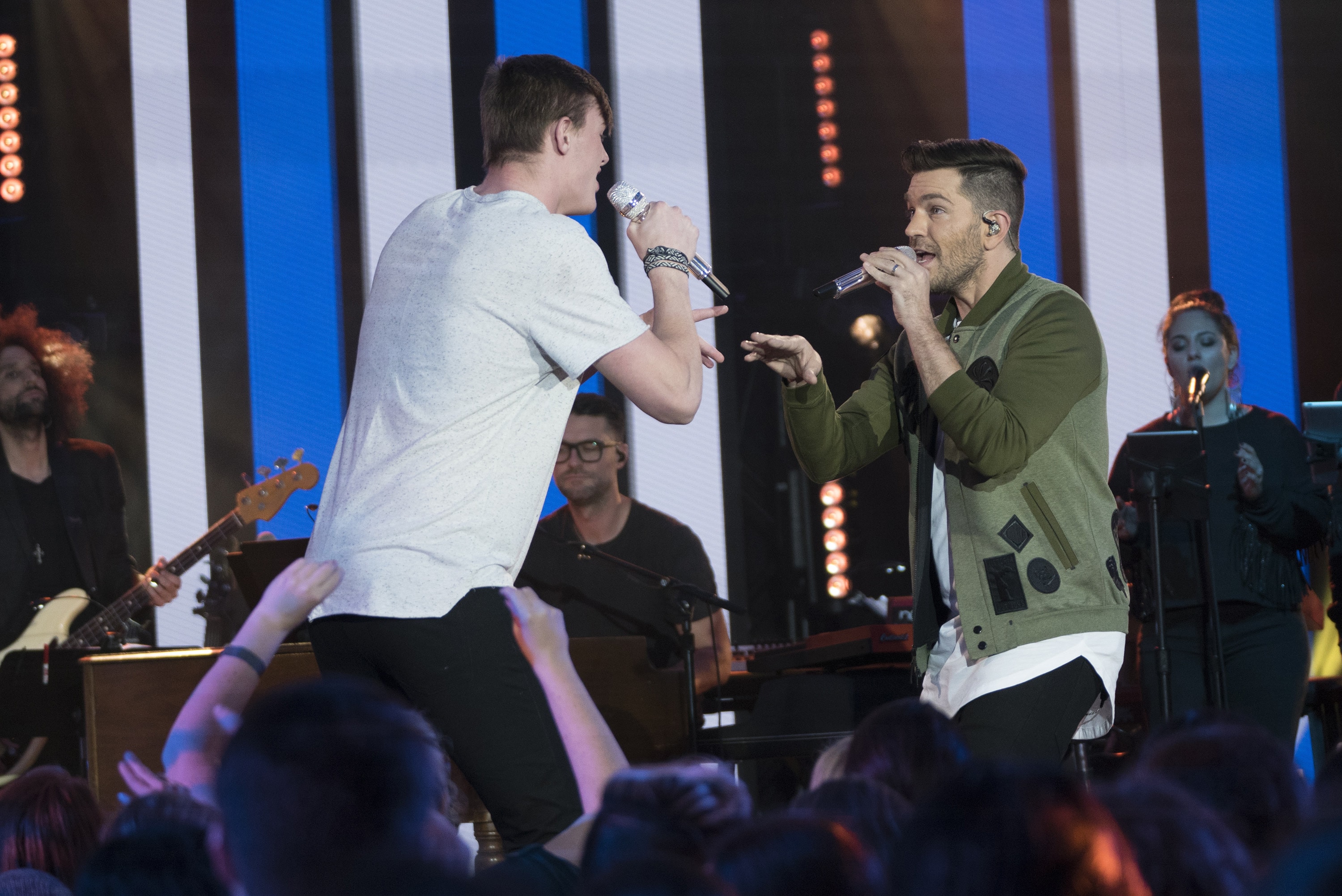 Brandon Diaz with Luis Fonsi, Cade Foehner with Bishop Briggs, Catie Turner with Andy Grammer, Dennis Lorenzo with Allen Stone, Dominique with Aloe Blacc, Gabby Barrett with Sugarland, Jonny Brenns with Andy Grammer, Kay Kay with Pat Monahan, Layla Spring with Sugarland, Michael J. Woodard with Pat Monahan, Michelle Sussett with Luis Fonsi, Trevor McBane with Bishop Briggs