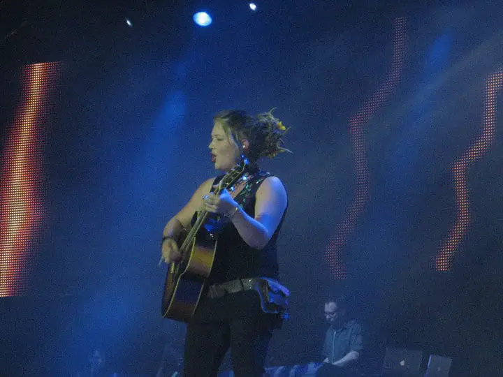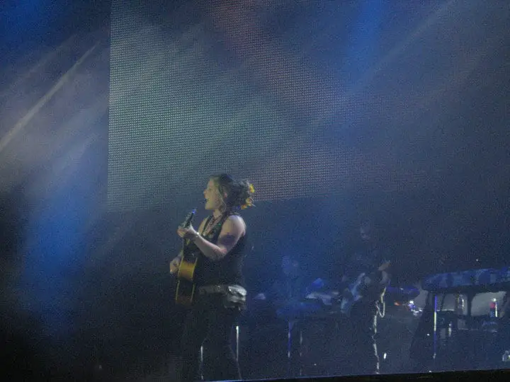 In my opinion Crystal was the highlight of the show! She has such an amazing voice and she is an amazing performer. When the intro for her came up on the screen everyone was screaming and clapping. This was the set I was most excited for. She came out singing What’s Up and she was great. I had to stand up for her set because it was just too amazing. When she was done singing her first song some interesting things happened. First Crystal saw that beach ball I was telling you about earlier. She said “Throw it to me! I want to play, don’t leave me out of the loop haha!” She caught the ball and hit it as hard as she could. So we got to see a concert and a volleyball match all in one set! Then Crystal saw a guy holding up a sign. It said it was his 21st birthday so Crystal said happy birthday to him. The whole crowd got silent and they put him on the jumbo screen and he started screaming “I LOVE YOU. I LOVE YOU…”! Funny thing is he sat next to me last year! Haha what are the chances! Crystal started he next song which is my favorite, Come to My Window. I love her version of it and her harmonica playing is great. My aunt was astounded that someone could play guitar, play harmonica, and sing at the same time! I was definitely singing along to this one. Next was Up to the Mountain. I really liked it and it was kind of different that the version she sang on the show. I liked it even more. Now Crystal’s last song was the way to end a set. It was fun and it really kept people wanting more. Piece of My Heart was a great choice for Crystal and I loved every minute of it! Crystal’s set was amazing and she seems so down to earth. She was born to sing and she will have a long career in music!