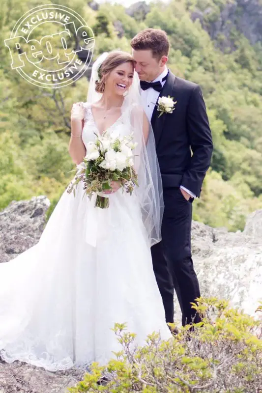 The bride wore an “elegant” bridal gown by Morilee for her big day and exchanged personalized wedding vows. They shared their first dance to a song by one of Scotty’s musical heroes–Elvis Presley’s “Can’t Help Falling in Love.”