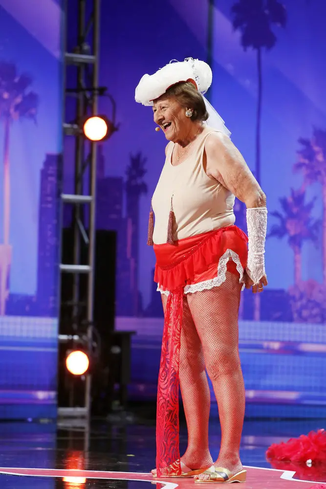 Dorothy Williams – Dancer – 90 year old has been dancing since 17 years old. She gave up her dream at age 23, however. She’s hoping to become a star! She sings “Let me Entertain You” and then takes it all off to “The Stripper.” Judging by all the shocked reaction teasers, I had a feeling this was the deal. She’s got tassles on her outfit, which she attempts to twirl–attempt being the operative word here. Mel says “Good for you!” Heidi loved it. Simon is fascinated. In other words NOVELTY at least for another round or two. Howie thinks she SHOULD become a star. And of course, Nick is so impressed, he says, “A star is born tonight!” All the judges have used their golden buzzers. BUT NICK DOESN’T CARE HE’S GOING TO BREAK ALL THE RULES and push a golden buzzer (Dorothy will advance straight to the live shows). That was so spontaneous! /sarcasm. – 4 yeses.