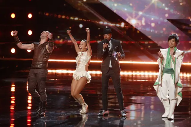 Outlawz and Daniel Joyner take the stage. The next act going to the semi-finals is…NEITHER! I thought so. Daniel looked a little shocked. Sila Sveta, Tape Face and Jon Dorenbos take the stage next…Jon Dorenbos advances! Nick tells the remaining acts to wait. Because one is going through…and of course it’s Tape Face. Sila Sveta is eliminated.
