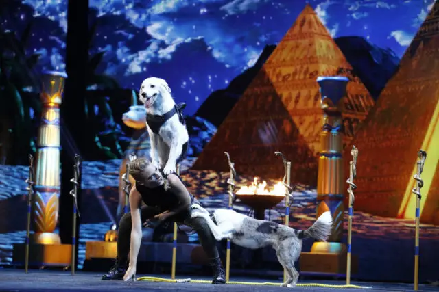 Sara & Hero – Dog Act – Sara and her 3 dogs live on the road, in an SUV. Sara’s choice to devote her life to doggos has driven a wedge in her family relationships. I have yet to be impressed with this act. But Simon loves them, for some reason. Hero is a well trained dog, but the tricks are pedestrian. And with just the two of him, it’s a bit boring. Oh. She brings another one of her dogs out onto stage tonight. It’s an improvement. The Pompeyo Family was more entertaining, though. Their dogs had personality. The controlled chaos they created on stage was way more fun than this. Howie delivers faint praise. America loves dog acts, he says. He expects they’ll vote. Mel says the act improved in the second half. Heidi felt the act was much improved this week. Simon calls it better than some of the human dancers they’ve had on the show. Simon BEGS America to vote for Sara. Including all the cats and dogs at home. Simon really loves this act. I don’t get it.