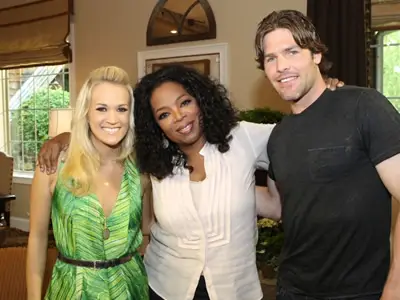 Carrie & Mike invited Oprah Winfrey to their cabin retreat outside of Nashville for their 1st television interview together. Oprah first sat down to talk with Carrie about what that cabin means to her, how she has adjusted to the scrutiny that came with winning American Idol, how she separates her persona as a performer from her regular self, how she is adjusting to married life, and what else she is aiming for in life. Mike joins Carrie & Oprah to talk about marriage, family plans, and the role of religion in his relationship with Carrie. There’s also an adorable segment in which Mike and Carrie take the ice at the Bridgestone Arena! But that’s not all, they also take Oprah to the land where they will one day build their dream home. The interview closes with all of them singing together. It’s a great interview with more than the usual character insight into Carrie.