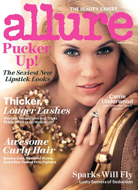Carrie Underwood graces the February cover of Allure magazine. In it, she discusses family, follows up on her comments to the UK’s Independent supporting marriage equality, and talks about how she avoids wardrobe malfunctions. You can check out a slideshow of pictures and quotes from the interview at Allure.com. Here are some highlights: