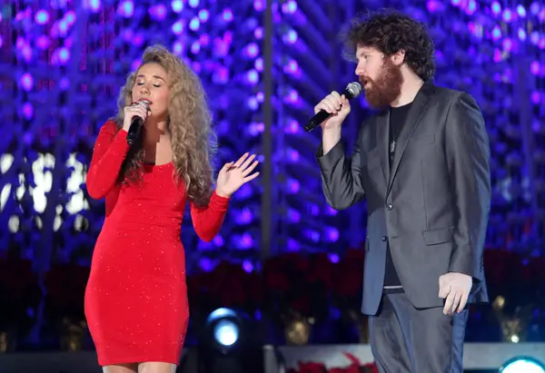 L.A. Live threw a Christmas tree lighting party tonight at the Nokia Plaza in Los Angeles. Amongst those there to help celebrate and entertain onlookers were Casey Abrams and Haley Reinhart, Pia Toscano, Il Volo and Javier Colon from the Voice.