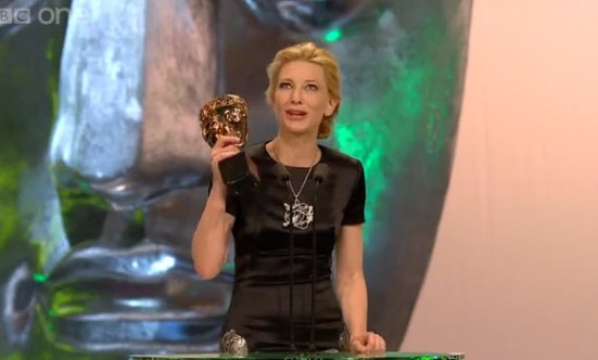 Cate wins yet another award (along with statues from the Golden Globes and SAG) for her portrayal in the beleaguered director’s latest effort. Pundits are wondering if the open letter Dylan Farrow, Woody’s adopted daughter posted, accusing him of sexually molesting her when she was seven will hurt Cate’s Oscar chances. Dylan called out Cate by name in her unsparing essay. If Cate’s BAFTA award is any indication, probably not.