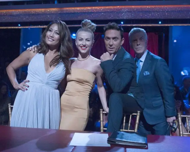 Following their first dance, each couple will be paired up with another couple to perform in the “Team-Up Challenge.” Each team will dance together to one song, and for a portion of the dance, the two celebrities will dance together without the assistance of their professional partners. Each team will perform either a paso doblé, contemporary or jazz routine. The judges will score the “Team-Up Challenge” dances. The points from the “Showstoppers” routine and the “Team-Up Challenge” will be added together for the final judges’ scores.