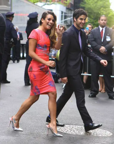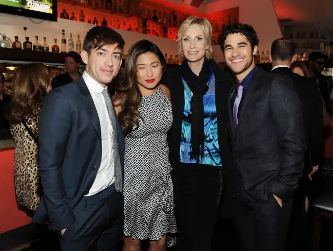 Matthew Morrison, Jane Lynch, Lea Michele, Chris Colfer, Darren Criss, Kevin McHale and Jenna Ushkowitz, were all in attendance, representing Glee. And their mood was a little more upbeat, considering their show been renewed for two more seasons.  The cast attended the Fox Fan Front event, which allowed fans to meet and greet the stars from behind a velvet rope. Ha.  X Factor alums, Fifth Harmony performed and newly signed contestant, Beatrice Miller was spotted in photos with the Glee gang.  Check out a photo gallery at the bottom of the page!