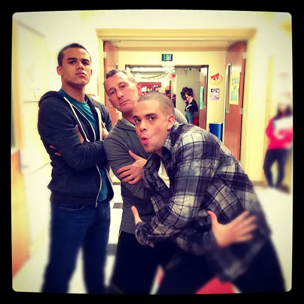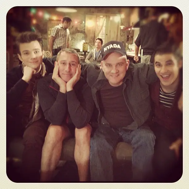 Blaine (Darren Criss) surprises Kurt (Chris Colfer) at a New York City ice skating rink. The man responsible? Kurt’s dad (Mike O’Malley). The pair skate and  sing “White Christmas” together, where they eventually “… kind of come to a realization that they’ll always be amazing friends, because they were so important to each other” (Chris in a TV Line interview).  Also, Chris spills that the reason Blaine is there is a “secret” could he be scouting out colleges for the following year? Hm?