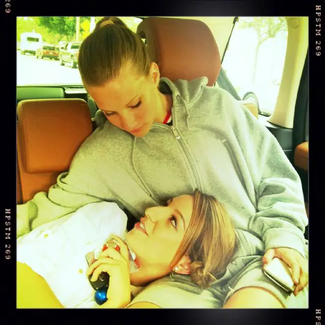 - Dianna Agron tweets: Two angels on the way back from our lunch break. Miss Heather &