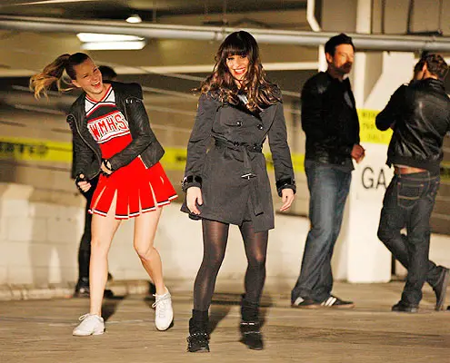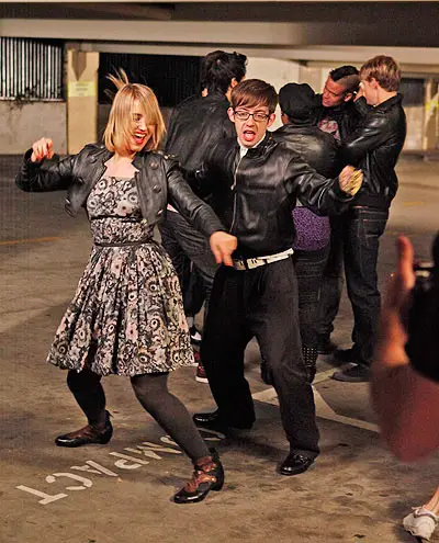 TV Guide’s William Keck tweeting from the Glee set: “It’s the Warblers vs. New Directions as #Glee takes on the #MichaelJackson classic BAD in a rainy LA parking garage. Kurt packs a mean punch” (Probably THIS) and “Why is #marksalling wearing a red Cheerios skirt during #Glee rehearsal of #MichaelJackson BAD number???” (Dec 15) UPDATE: Answer: Mark was just goofing around during “Bad” rehearsals. Read the TV Guide story HERE.