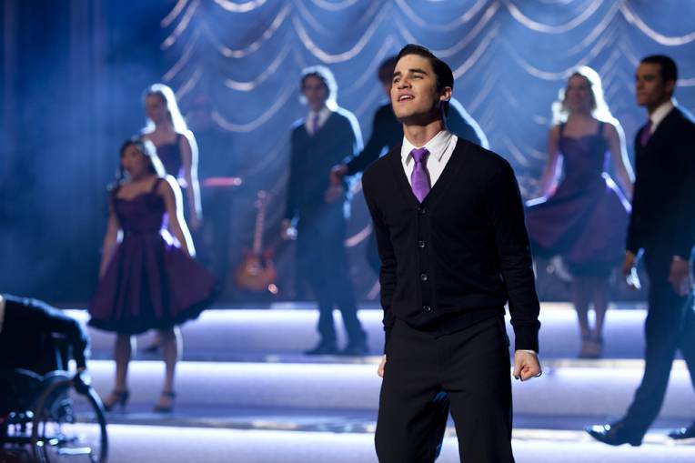- On Blaine (Darren Criss) popping the question to Kurt (Chris Colfer): “Sam is one of those guys who’s a sweet guy and is always there for people — he’s encouraging and he’s wise beyond his years. He’s always supportive but he does try to be the voice of reason,” Overstreet says, noting that people change a lot between the ages of 18 and 25. “If it were me and it was my friend about to propose in high school, I’d tell him to wait and see.”