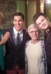 AND, will Blaine pop the question to Kurt? He’s already gotten advice from Kurt’s Dad. In the finale, Blaine shops for a ring at a jewelry store and meets a character played by Patty Duke, who is the jewelry salesperson. Blaine shares his love for Kurt and then she her longtime girlfriend, played by Meredith Baxter, offer to be their mentors. In the photo below, it looks like the four are having dinner at a restaurant. Via GleekOutBrasil