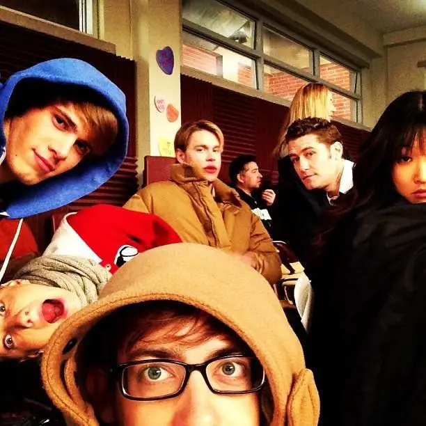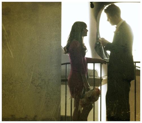 Also, via the candid photos posted below, Jake (Jacob Artist) and Marley (Melissa Benoist) are spotted in a hotel room too. Also…is that Sue Sylvester (Jane Lynch) in a wedding gown? WHAT?