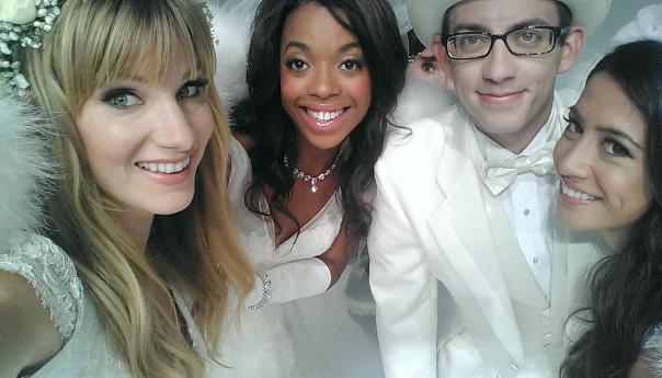 All the Glee graduates are back, on and off, throughout the season. Harry Shum Jr., finished shooting Crouching Tiger, Hidden Dragon 2, and announced that he is back on set as Mike. Dianna Agron (Quinn) and Mark Salling (Puck) will appear in a few episodes–as a couple! She wasn’t written into most of last season’s New York storyline, but Tina (Jenna Ushkowitz) also returns for a few episodes. Amber Riley and Kevin McHale are back as Mercedes and Artie, respectively. Other than Alex, the only other newbie to return so far, is Becca Tobin as the sharp tongued Cheerio, Kitty. All bets are on Rachel “convincing” her to return to glee club.