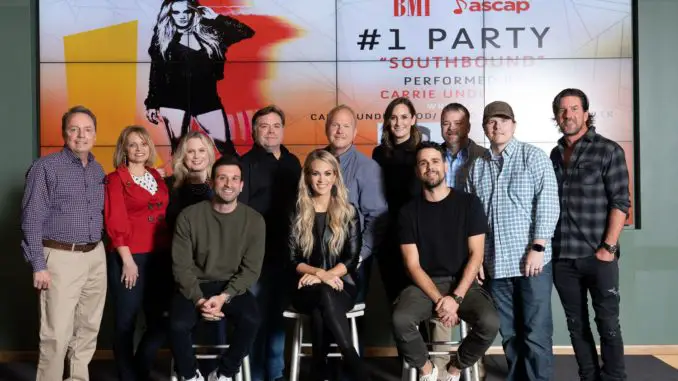 Carrie Underwood Sets “Southbound” Party Vibe – There was just enough mist falling Monday afternoon (Oct. 20) to irritate windshield wipers as guests alighted from their cars and scurried into the BMI building in Nashville to celebrate the chart success of Carrie Underwood’s single, “Southbound.” BMI’s Jody Williams told the gathering that he was recently talking to award-winning songwriter Lori McKenna who was loud in her praise of Underwood. “Carrie’s not a good writer, she’s a great one,” he quoted McKenna saying. “She can hold her own with anyone.” Statistics bear McKenna out. Underwood has co-written eight of her No. 1 singles on Billboard’s country airplay chart. – Read more at CMT