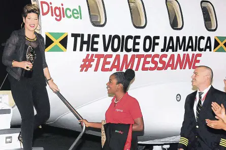 Tessanne Chin Arrives Home in Jamaica – Jamaican songbird Tessanne Chin is now on home soil after her historic win on the NBC talent show The Voice on Tuesday night. Chin touched down at the Norman Manley International Airport in Kingston just after 7:00 last night from New York on a private jet courtesy of her sponsors Digicel, to a red carpet welcome. – Via Jamaica Observer