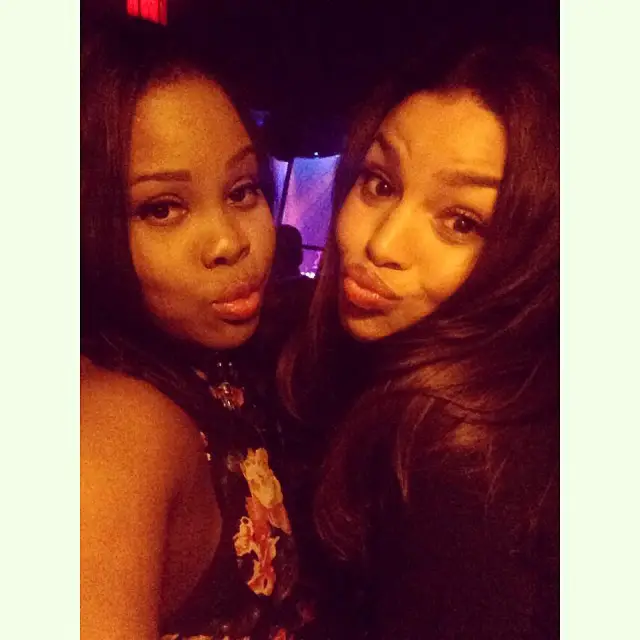 American Idol season 6 winner, Jordin Sparks and Glee star and DWTS winner, Amber Riley photographed together. Amber posts on Instagram: “At a show w/ my sis @jordinsparks! We love duck lips”