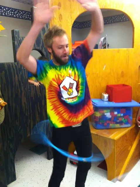 Paul McDonald tweets, Hula-hooping with the kids at the Ronald McDonald House! We had some fun!