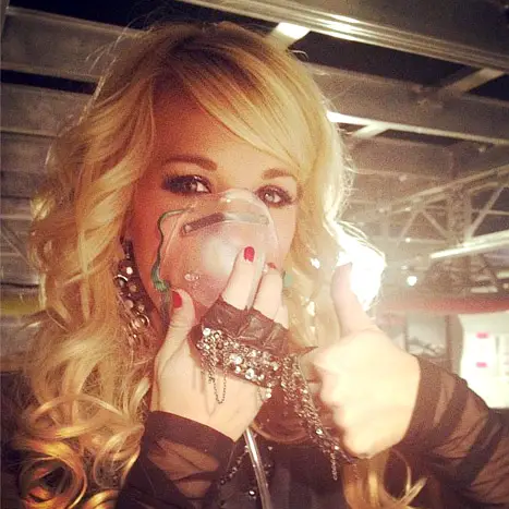 She also uploaded a photo of herself wearing an oxygen mask in Colorado “In high altitudes, they put oxygen in my dressing room under the stage! This is me before the encore,”