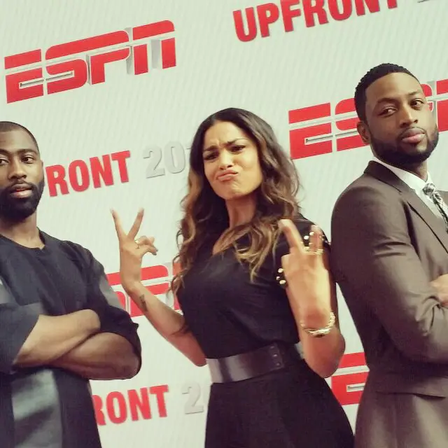 Jordin instagramed this photo with the caption, “Sang for the #ESPNupfronts in NY. Then this happened w/ @dwyanewade & @revisislandtwo4. Idk what we were doing. Lol Thanks for having me! :)”