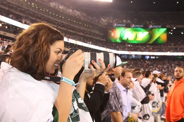 Season 6 Idol winner, Jordin Sparks shoots photographs on the sideline of the Minnesota Vikings Vs. New York Jets NFL game at the New Meadowlands Stadium last night (Oct. 11) in East Rutherford, NJ.