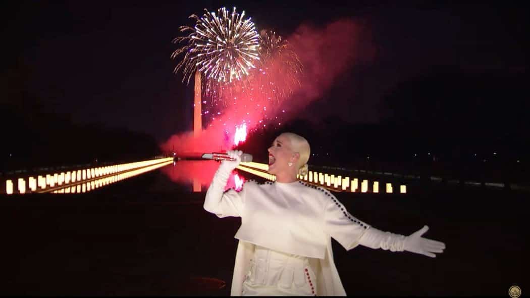 Check out Katy Perry conclude Celebrating America with a performance of “Firework” as President Biden, Vice-President Kamala Harris, and their families watch fireworks light up the night sky.