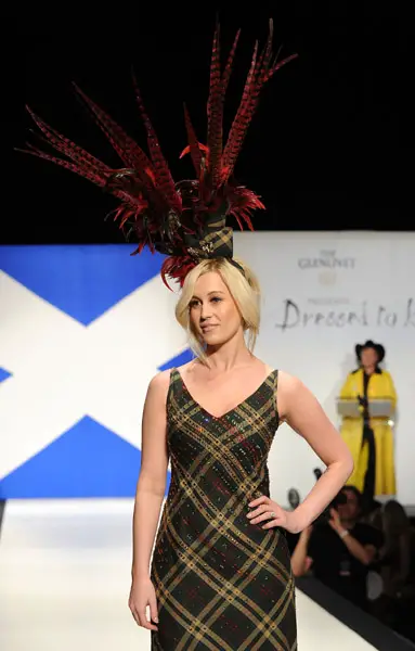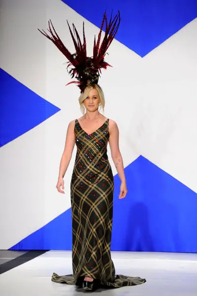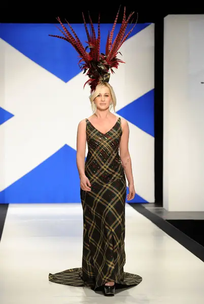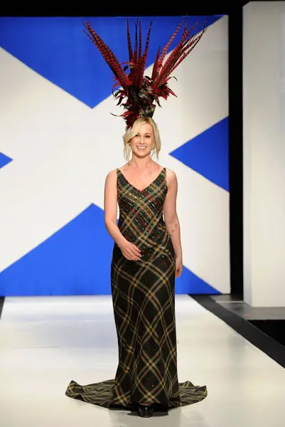 Kellie Pickler walked the runway IN A FABULOUS HEADDRESS Tuesday night (April 5) at the 9th annual Dressed to Kilt charity fashion show at the Hammerstein Ballroom in New York City.