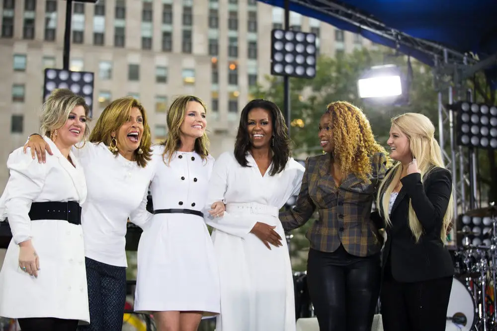 NBC’s Today show celebrated the International Day of the Girl Thursday morning (Oct 11) with a visit from former first Lady Michelle Obama. The show ended with a concert featuring American Idol alums and The Voice coaches Kelly Clarkson and Jennifer Hudson, in addition to Meghan Trainor.