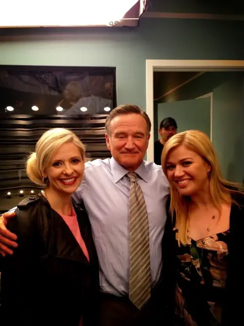 Kelly Clarkson’s super busy 2013 continues, with the original recipe Idol spending yesterday shooting scenes with Sarah Michelle Gellar and Robin Williams for a new CBS show called The Crazy Ones! Robin Williams tweeted out the featured picture with the message