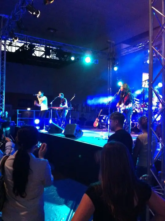 “Kris Allen came by for an hour long concert, followed by an unsuspected Meet and Greet, where me and my sister got an autograph each, and our picture taken with him. When we moved up close, we were right next to the speakers, so you cant really hear him. Clips are skeptical cuz my camera died real closely after the Live Like We’re Dying bit…”