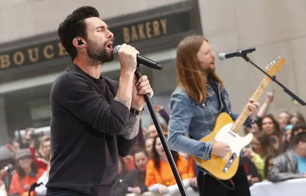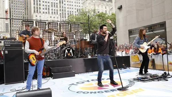 Adam Levine and Maroon 5 performed on The Plaza at Rockefeller Center for The Today Show.