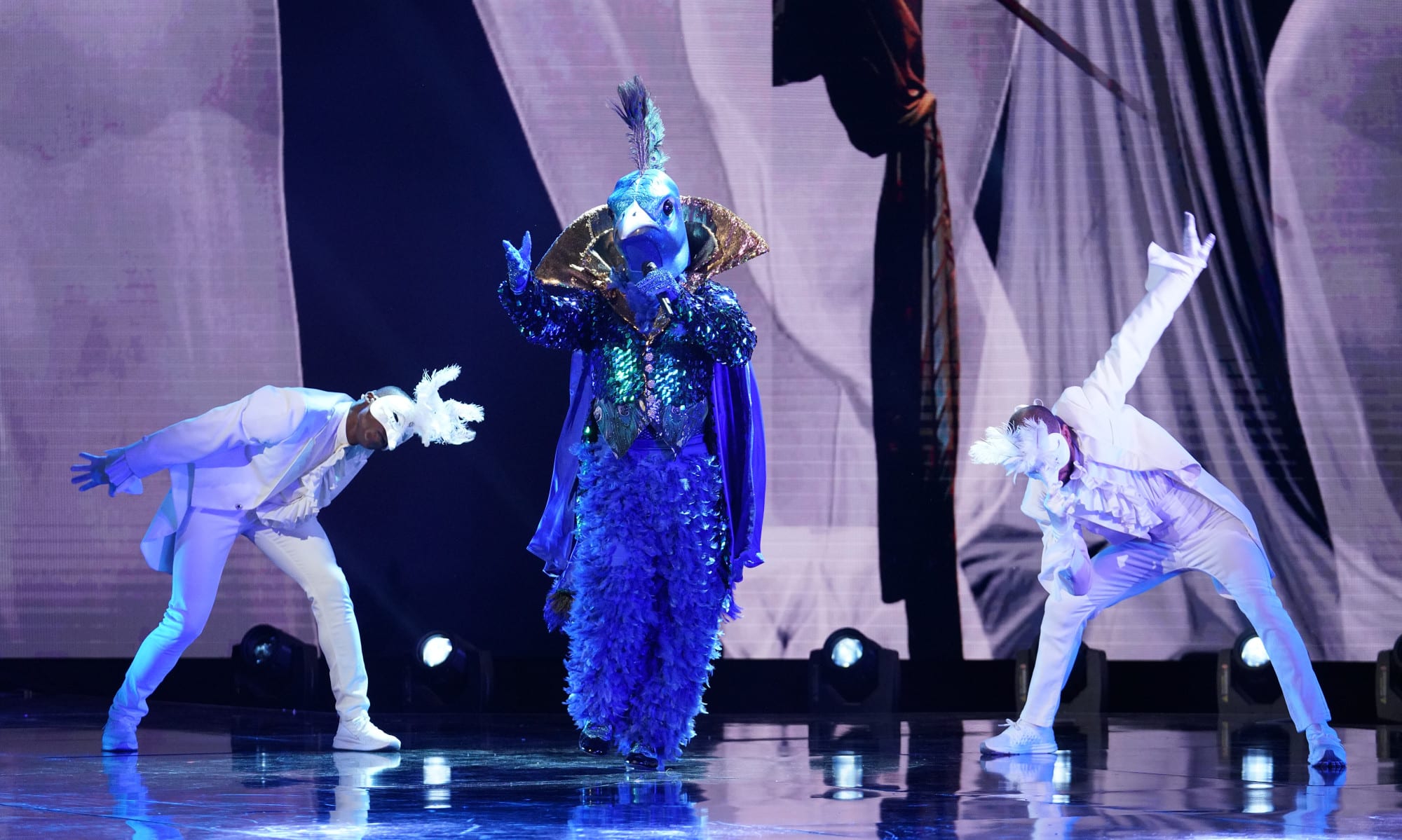 Guess: The Peacock is most assuredly Donny Osmond. It doesn’t help that his big mouth sister Marie pretty much blew his cover on a recent Access Hollywood appearance. Anyway. He started singing with his brothers at 5 years of age and was a teen Idol in the 70s. went on to some Broadway roles