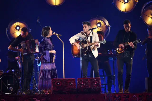 These days, country music award shows love mixing up different genres. On the 51st Annual CMA Awards that aired on ABC Wednesday night (Nov 8), country singer Maren Morris joined forces with Niall Horan (late of One Direction) for a duet of “Seeing Blind.” The two had previously recorded the song for Niall’s debut album, Flicker.