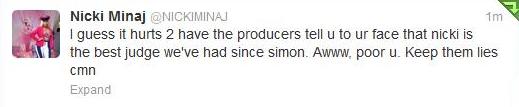 Here’s Nicki responding not only to Mariah, but to Idol producers as well. She’s REALLY pissed at Mariah. I’ll be adding the tweets as they appear.