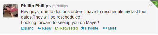 OH NO! Phillip Phillips has cancelled the rest of his college tour, due to illness, according to a press release posted by one of campuses, University of Wisconsin, Eau Claire.