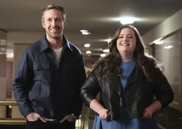 Melanie (Aidy Bryant) creeps out her friends when she hits on birthday girl Taylor’s dad (Ryan Gosling).