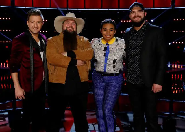 One of the four finalists — Josh Gallagher from Team Adam Levine, Billy Gilman from Team Adam Levine, Sundance Head from Team Blake Shelton or We’ McDonald from Team Alicia Keys — will be crowned the winner of The Voice.