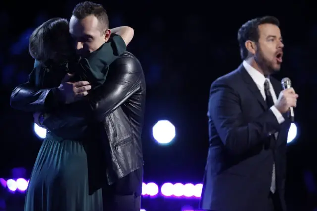 The Top 11 take the stage. Dumb question for Brendan. How has coach Adam helped him? Allowing him to take risks and be himself. On to the results! America saved…from Team Blake…Sundance Head! He’s the singer who entered the Top 10 this week. He shouts, hugs his coach, and takes a victory lap. America also saved…from Team Alicia…We McDonald!