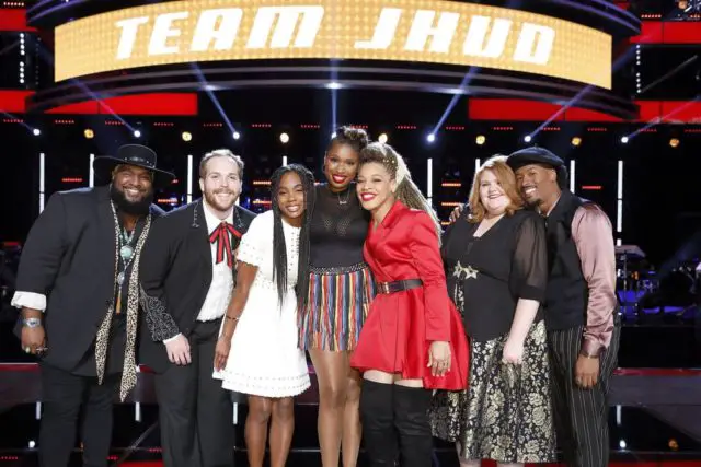 Pictured: (l-r) Team JHud: Patrique Fortson, Colton Smith, Kennedy Holmes, Jennifer Hudson, SandyRedd, Mackenzie Thomas, Franc West — (Photo by: Trae Patton/NBC)