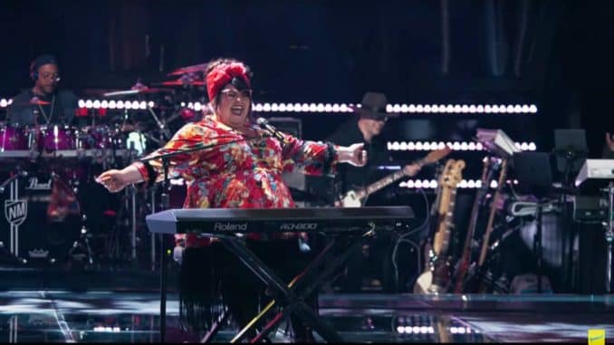 As she growls her way through Aretha Franklin’s “Baby I Love You” the coaches, Blake Shelton, Kelly Clarkson, John Legend and Gwen Stefani get excited.